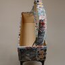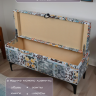 Каркас выполнен из берёзовой фанеры, которая придает прочность, но при этом не утяжеляет пуф, как в случае с МДФ. Он легко выдерживает нагрузку до 200 кг, а вес вложения может достигать 30 кг. Внутри ящика имеется лифт, который удерживает крышку в поднятом положении, когда это необходимо. Поролон высокого качества – не деформируется и не проседает по истечении времени.