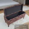 Каркас выполнен из берёзовой фанеры, которая придает прочность, но при этом не утяжеляет пуф, как в случае с МДФ. Он легко выдерживает нагрузку до 200 кг, а вес вложения может достигать 30 кг. Внутри ящика имеется лифт, который удерживает крышку в поднятом положении, когда это необходимо. Поролон высокого качества – не деформируется и не проседает по истечении времени.