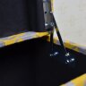 Каркас выполнен из берёзовой фанеры, которая придает прочность, но при этом не утяжеляет пуф, как в случае с МДФ. Он легко выдерживает нагрузку до 200 кг, а вес вложения может достигать 30 кг. Внутри ящика имеется лифт, который удерживает крышку в поднятом положении, когда это необходимо. Поролон высокого качества – не деформируется и не проседает по истечении времени.