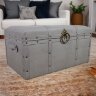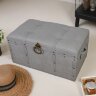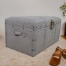 ID#1585Особое предложение для любителей роскоши - очень красивый сундук -банкетка из серой кожи с бронзовой фурнитурой. Украшен по корпусу декоративными резными гвоздями и ремнями, делающими его схожим со старинным сундуком. Сходство с сундуком придают также декоративные ручки по бокам. Крышка выполнена из толстой фанеры, поэтому банкетка может легко выдерживать вес сидящих людей до 200 кг. Для комфорта сидящих в крышке использован толстый, упругий поролон. Банкетка имеет небольшие пластиковые ножки, которые не царапают пол.